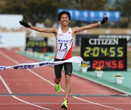 びわ湖毎日マラソンは28日、大津市皇子山陸上競技場発着で行われ、鈴木健吾(富士通)が2時間4分56秒の日本新記録を樹立して優勝した。(記録は速報値)