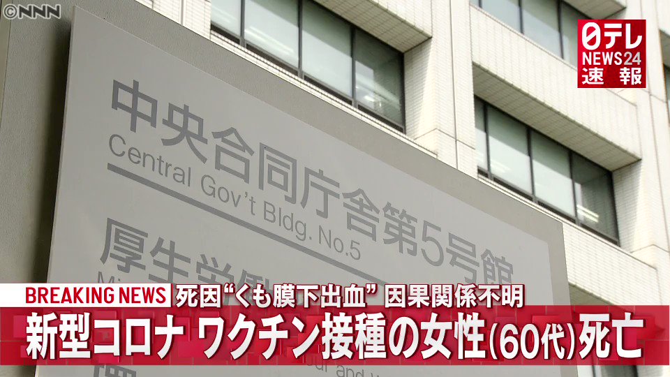 【ファイザー】ワクチン接種3日後に60代女性死亡 死因はくも膜下出血 因果関係は不明 基礎疾患やアレルギー歴なし ★7