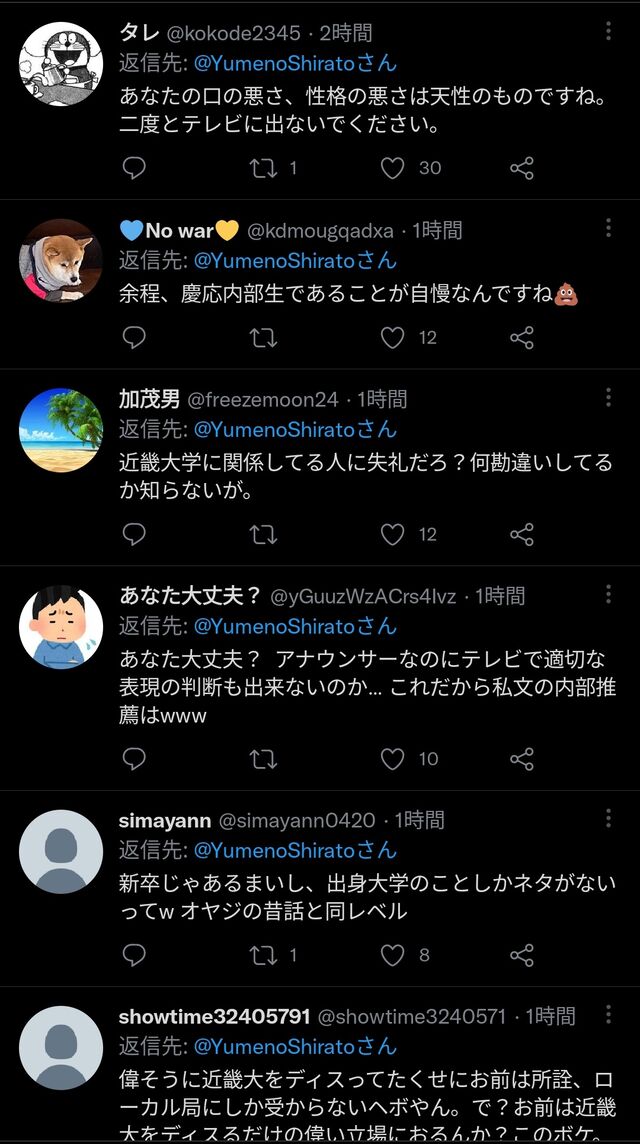 慶應卒女子アナ「低学歴でも気にしませんよ!近大卒の方と付き合ってましたし(笑)」→炎上www スポンサーリンク 2022/04/07 10:30 芸能 2: 風吹けば名無し 2022/04/06(水) 02:24:48.01 ID:twnpsGe/0 https://livedoor.blogimg.jp/uwasainfo/imgs/2/6/260ebfbd.jpg https://livedoor.blogimg.jp/uwasainfo/imgs/b/6/b6eeba58.jpg https://livedoor.blogimg.jp/uwasainfo/imgs/e/b/ebba6d8f.jpg https://livedoor.blogimg.jp/uwasainfo/imgs/3/1/31e2b0f3.jpg 続きを読む
