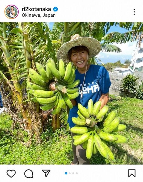 沖縄在住のタレント田中律子(51)が11日までに自身のインスタグラムを更新。自ら栽培したバナナを収穫する様子を公開し、反響を集めている。