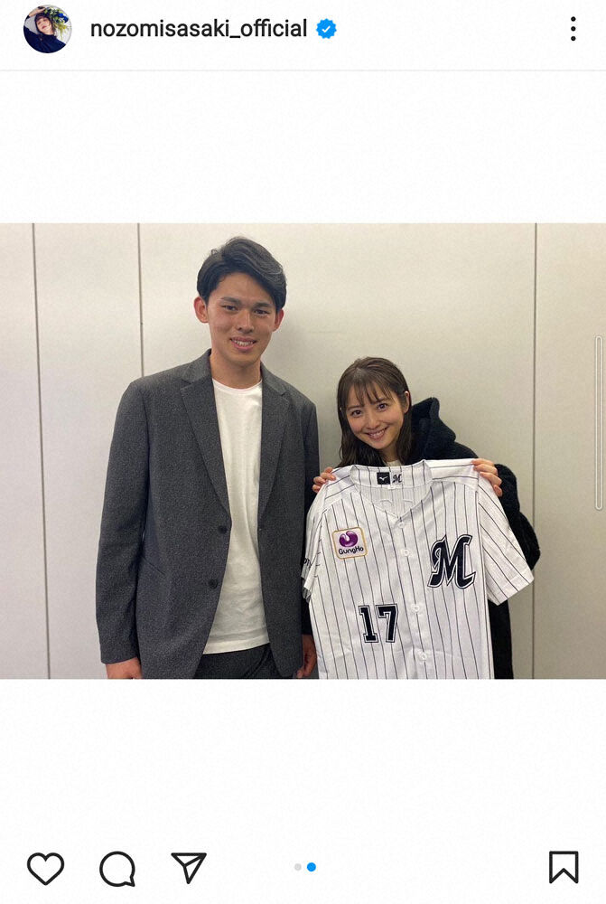 女優の佐々木希(34)が23日、自身のインスタグラムを更新。プロ野球ロッテの佐々木朗希投手(21)との2ショットを公開した。