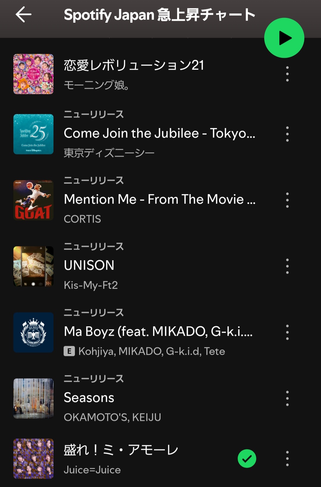 【快挙】Spotify Japan 急上昇チャートにハロプロから3曲がランクイン!! スポンサーリンク 2026/02/18 02:59 【快挙】Spotify Japan 急上昇チャートにハロプロから3曲がランクイン!! 1: 2026/02/17(火) 13:48:07.87 0 ハロプロ三大代表曲 https://open.spotify.com/playlist/37i9dQZF1DX9vYRBO9gjDe [紹介元] ウルフニュース|ハロプロまとめ 【快挙】Spotify Japan 急上昇チャートにハロプロから3曲がランクイン!!