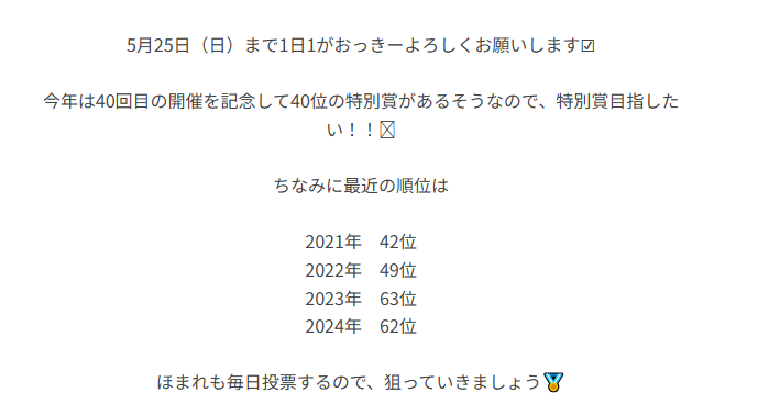 ほまれは知ってます。みんながちゃんと投票してないことを…だから今の順位知ってますか?ひどいですよ。みんながサボってるから!!!(クソデカry)