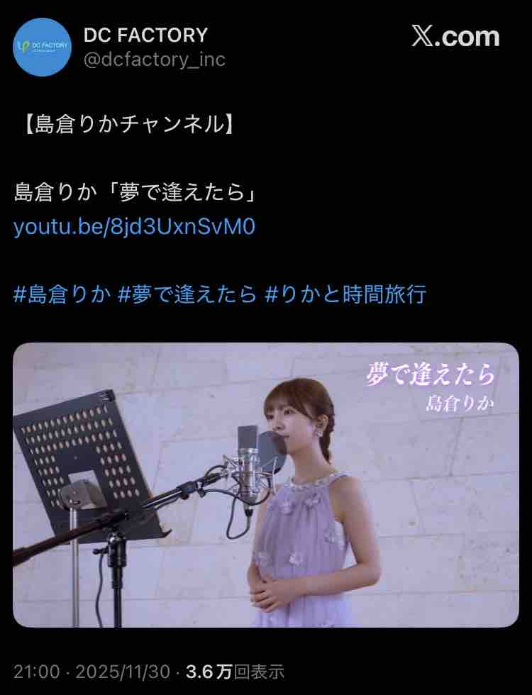 島倉りかさんの昭和歌謡、やや苦戦中 スポンサーリンク 2025/12/01 12:10 HELLO!PROJECT 島倉りかさんの昭和歌謡、やや苦戦中 1: 名無し募集中。。。@\(^o^)/ 2025/11/30(日) 22:34:11.79 0 カナダからの手紙→16万 涙くんさよなら→3.2万 グッド・バイ・マイ・ラブ→2.1万 つぐない→3.8万 夢で逢えたら→1511回 お前らガンガン再生しろよ 続きを読む