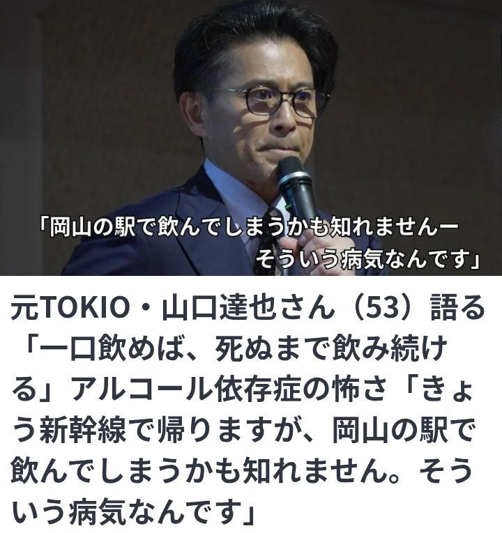 山口達也、泣く「酒は飲みたくないのに、気が付くと飲んでいる、それがアルコール依存症なんです。」
