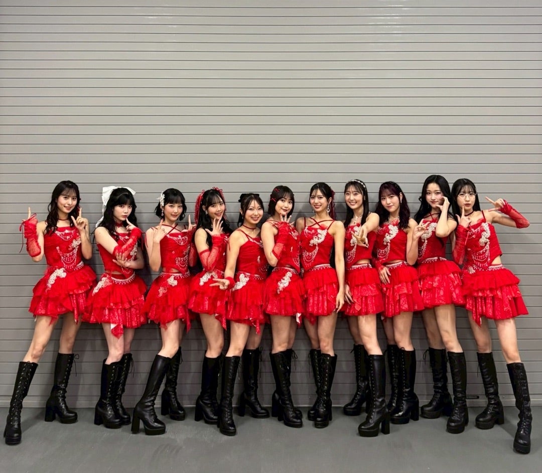 真っ赤な衣装で、盛れ!ミ・アモーレのダンスに合うようにってスカートもいっぱいフリルとか付けてくださっていてとっても可愛いんです!!!