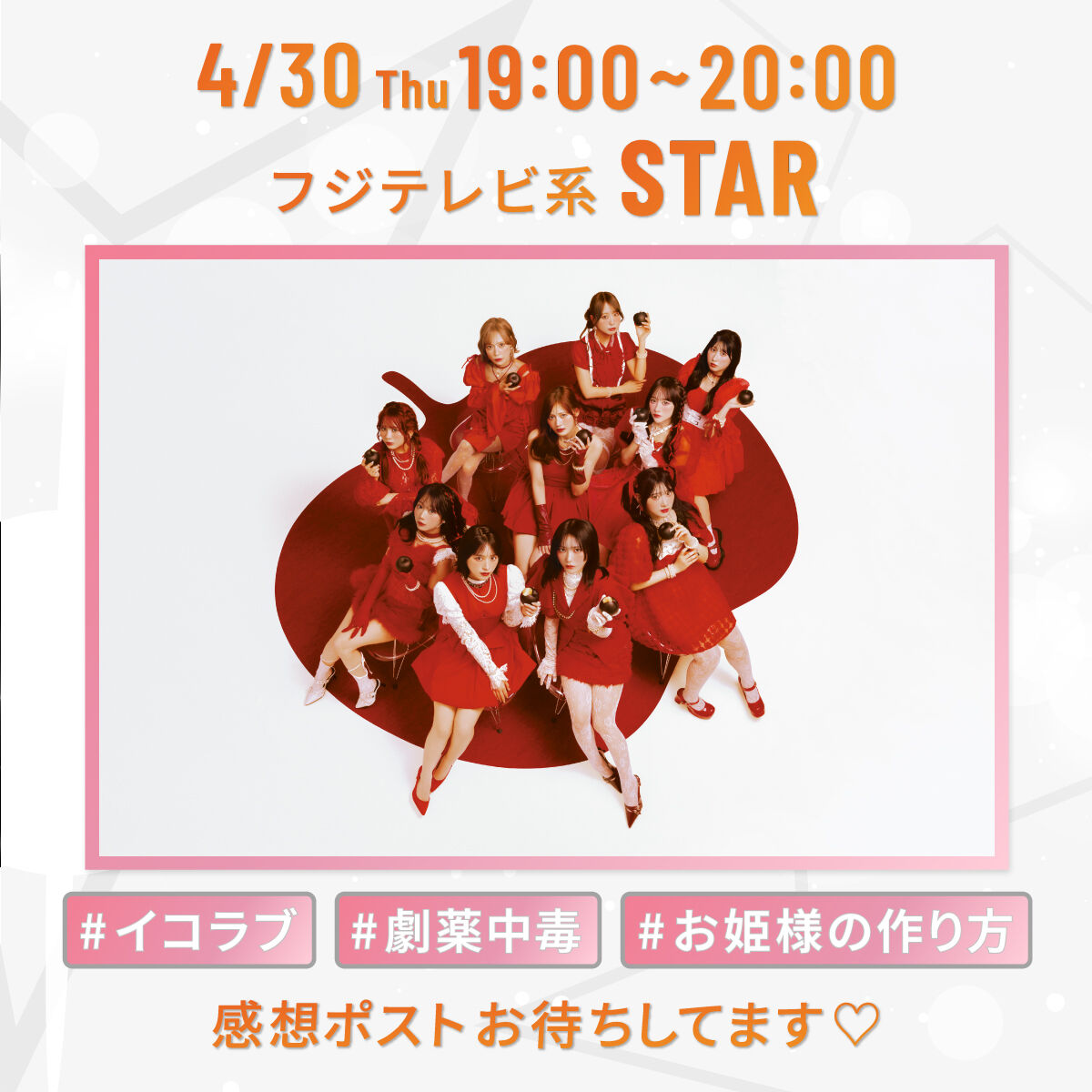 [イコラブ] 来週4/30放送「STAR」に、=LOVEの生出演が決定! 新曲『お姫様の作り方』『劇薬中毒』をSPメドレーで披露 スポンサーリンク 2026/04/24 04:59 [イコラブ] 来週4/30放送「STAR」に、=LOVEの生出演が決定! 新曲『お姫様の作り方』『劇薬中毒』をSPメドレーで披露 [紹介元] イコラブ@プレス(イコラブまとめ) [イコラブ] 来週4/30放送「STAR」に、=LOVEの生出演が決定! 新曲『お姫様の作り方』『劇薬中毒』をSPメドレーで披露
